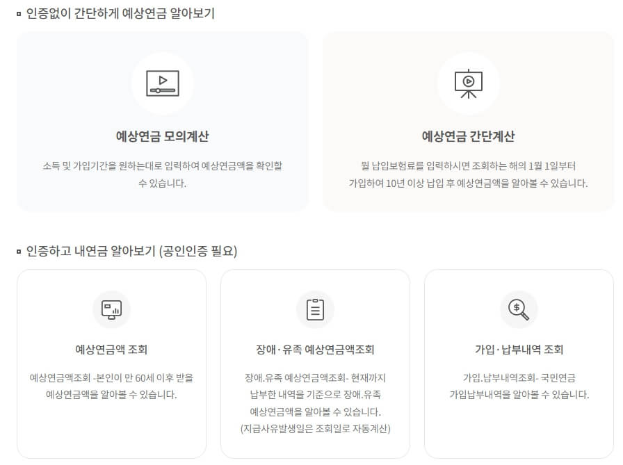 국민연금 홈페이지를 통해 예상수령액 조회가 가능합니다.