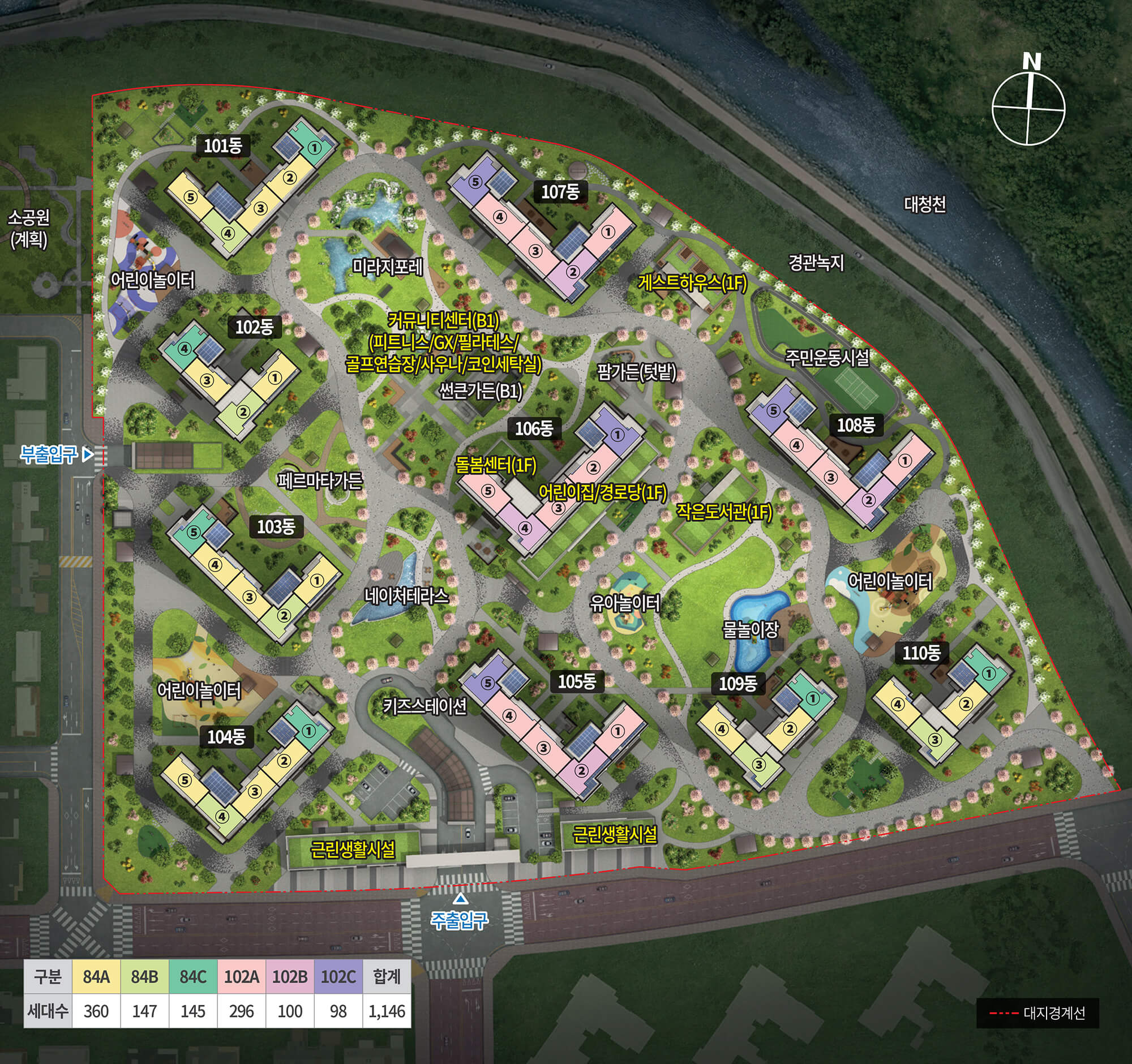 더샵 신문그리니티는 용두산과 반룡산이 인근에 위치해 있어 풍부한 녹지환경에 대청천과 조만강도 흐르고 있어 쾌적한 주거환경을 누릴 수 있겠습니다.