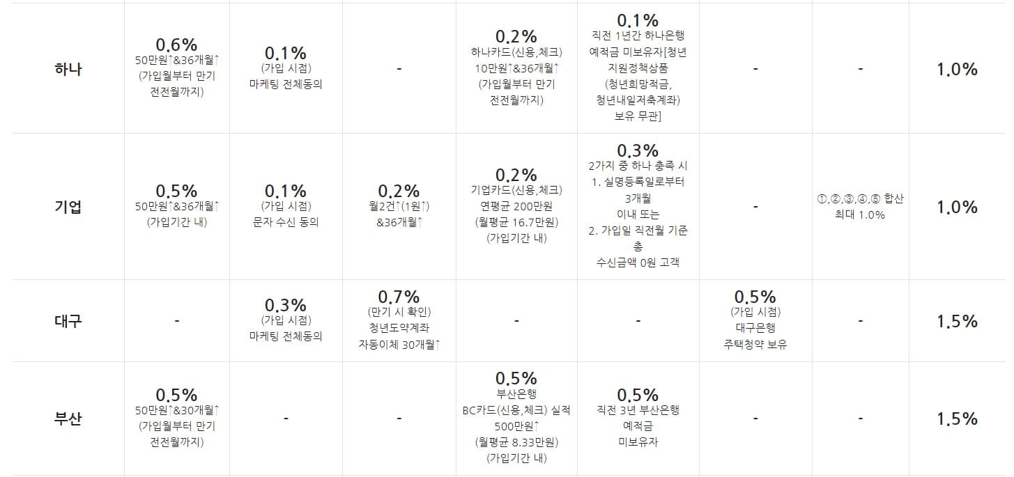 우대금리 세부항목 비교표